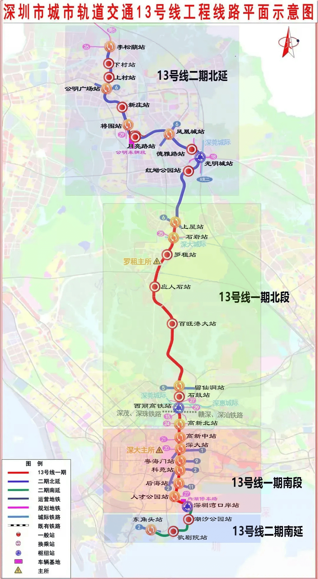 二期工程:包括北延段和南延段。北延段起自上屋站,止于公明北站,线座;南延段将从深圳湾口岸站向南延伸,串联深圳市规划十大重要文体设施——深圳市歌剧院,设置歌剧院站。