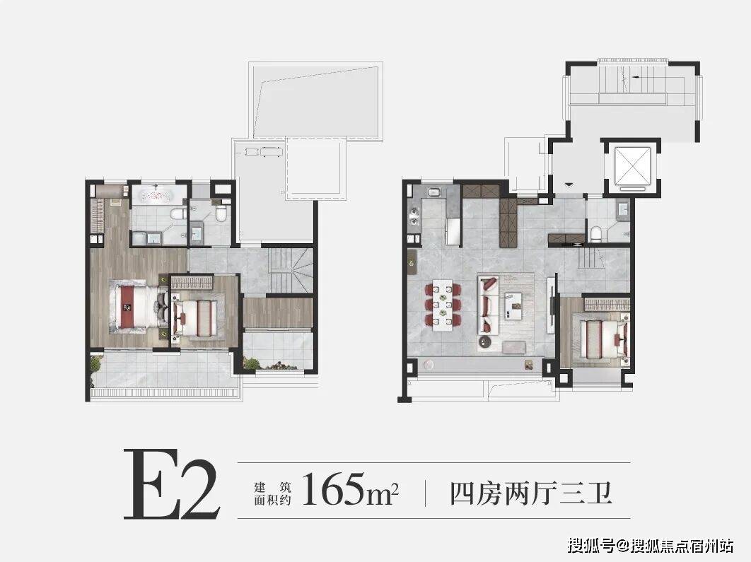 遵循大客厅原则,上下叠产品都做到了大横厅布局,同时叠墅的上下两层都做到了三开间朝南,合起来就是“一墅六朝南”的生活格局。二层的主卧套房包含了衣帽间、独立卫浴等功能,媲美行政套卧的舒适尺度和享受。