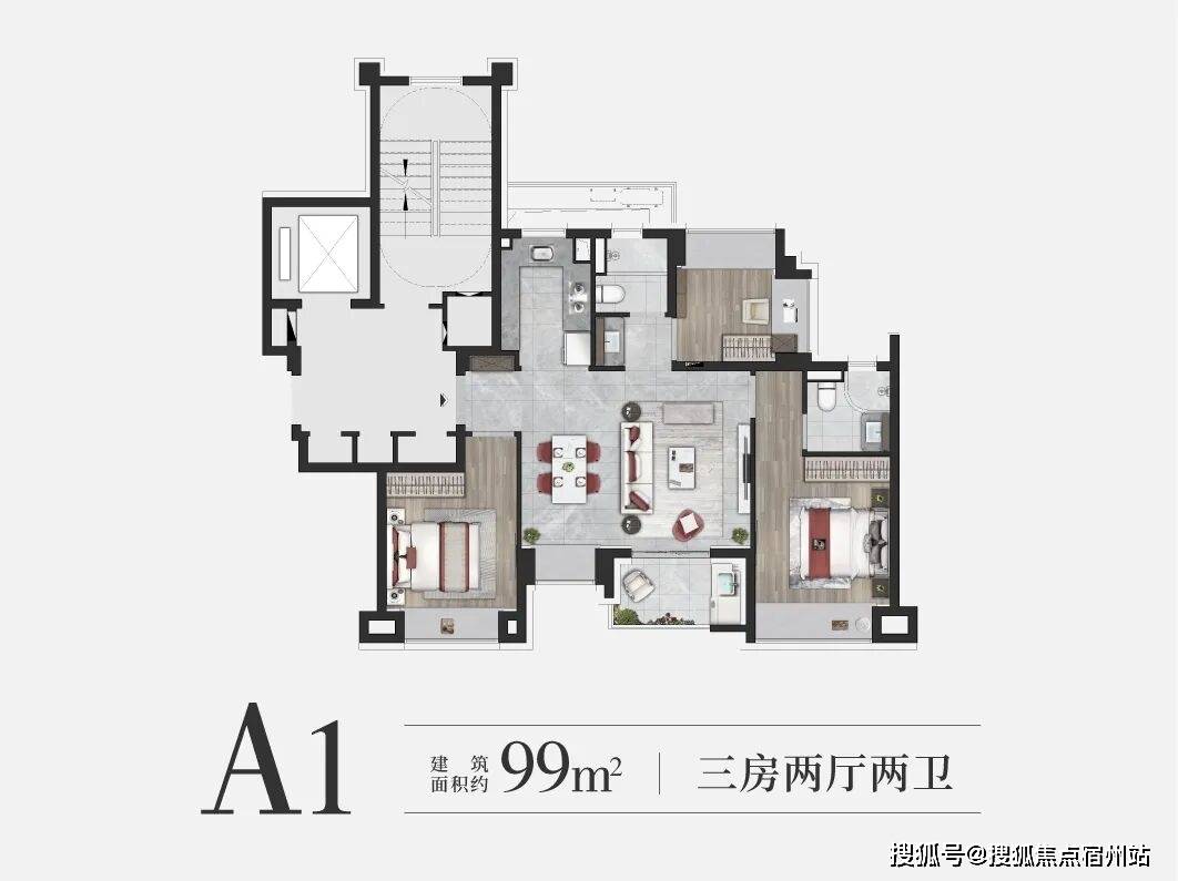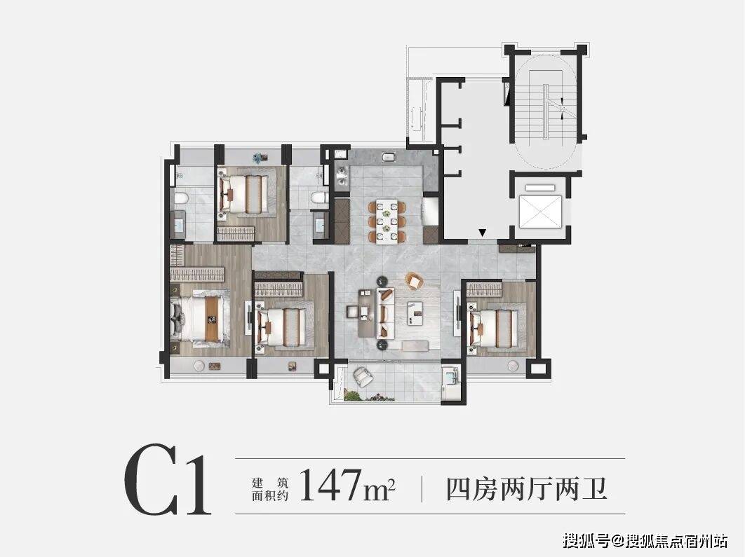 约125㎡4房2卫户型是约99㎡的升级版,四房更能保障业主的全生命周期需求。
