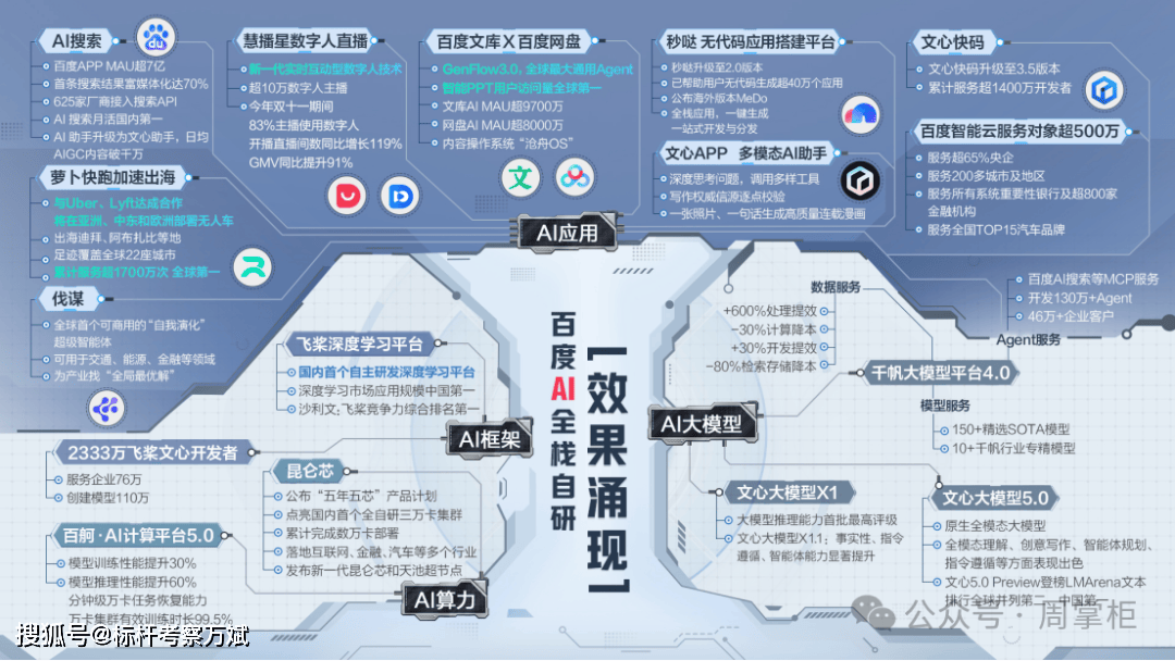 由此,百度已经是全球少有的从算力、框架、模型到应用进行全栈布局的企业,这个战略框架本身应该说拥有极大的战略进攻性和野心,如下图: