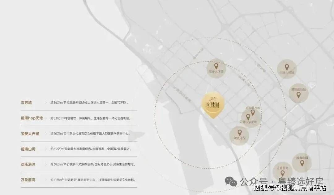 近享壹方城、欢乐港湾、前海HOP天地、大仟里、大悦城、万象前海、前海山姆、海雅缤纷城等十大标杆商业及商圈。