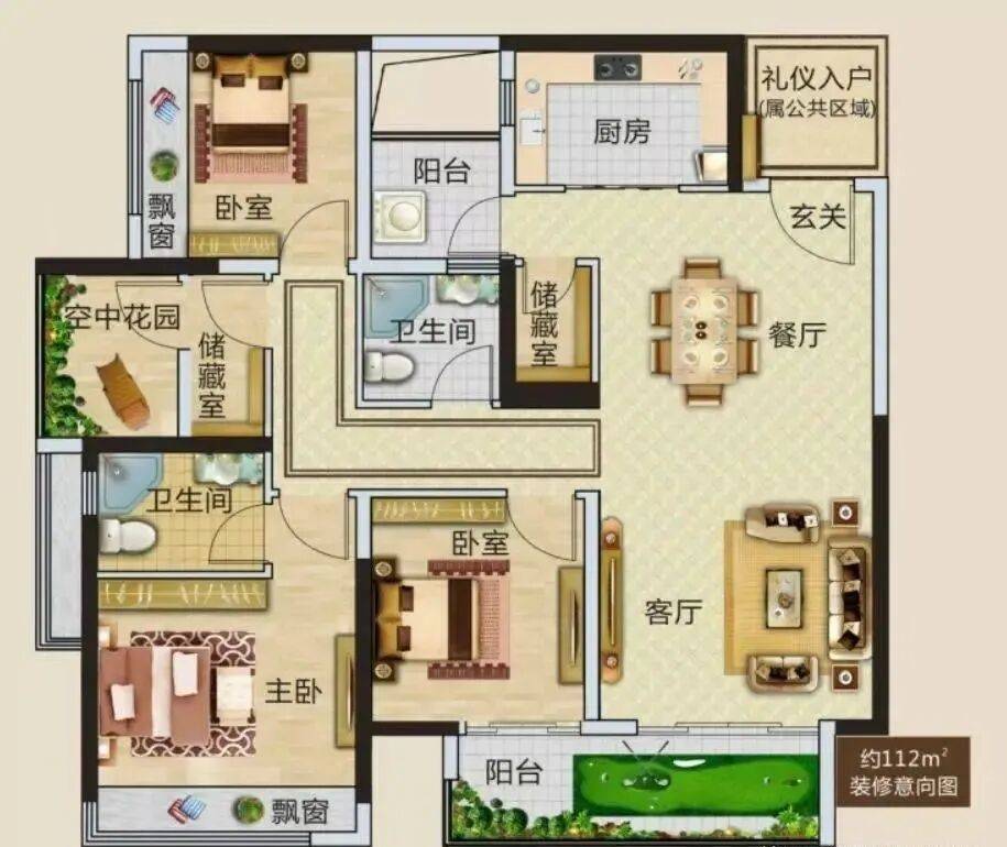 项目主力户型为建面约112–143㎡的四至五房,精准切中改善型家庭需求: