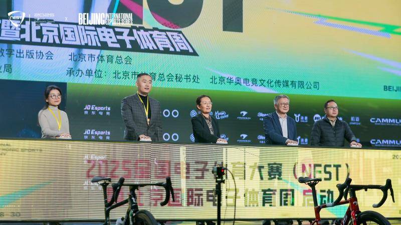 北京市体育局党组成员、副局长石风华、中国音像与数字出版协会常务副理事长兼秘书长敖然、北京市体育总会秘书长姚强、北京经济技术开发区宣传文化部副部长朱天博、北京经济技术开发区社会事业局副局长刘国建共同按下启动按钮,标志着2025全国电子体育大赛(NEST)暨北京国际电子体育周正式拉开帷幕。