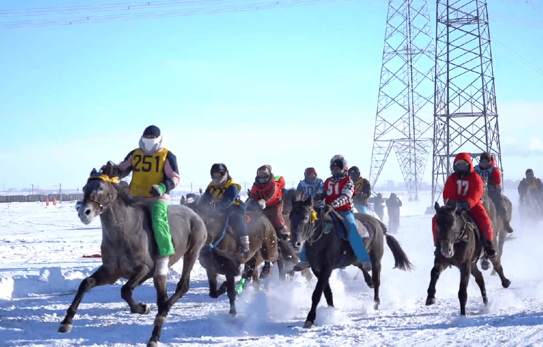 驰马踏雪,呼啸争先。赛马、赛骆驼比赛在海拉尔区苍狼白鹿冰雪运动基地火热开赛,5000米雪地速度赛马、马拉爬犁、驼球等7个比赛项目接连上演。选手们驾驭骏马、骆驼在雪野中疾驰,马蹄声、驼铃声与呐喊声交织回荡,尽显马背民族的豪迈气魄。这场赛事吸引了来自阿拉善、包头、通辽等地200余名选手同台竞技。此外,搏克、击瑟日、传统射箭项目也同步开展。