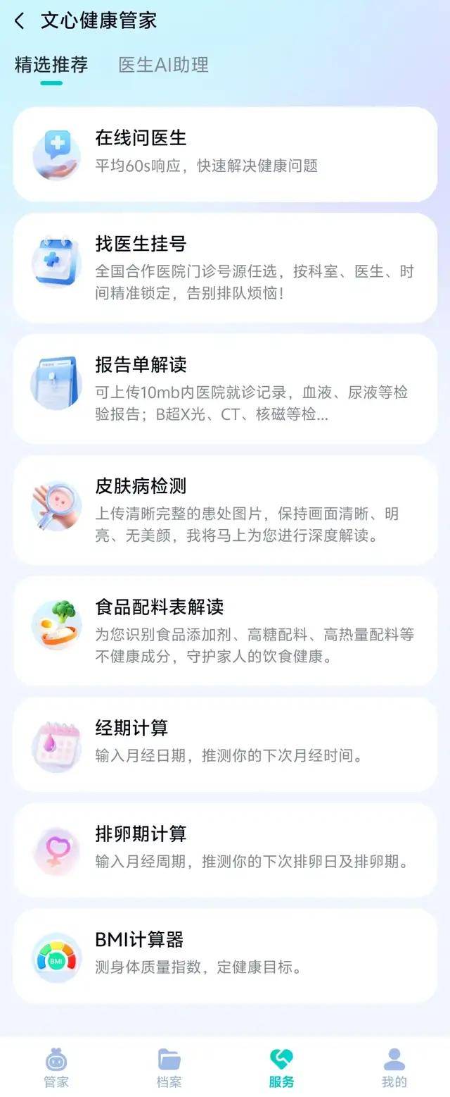 这一轮AI医疗重启,百度的姿态明显更为克制。 新推出并反复迭代的AI服务产品「文心健康管家」,被嵌入百度App的搜索体系之中,强调专业医学能力与大模型结合,其定位更像搜索体验的延展,而非独立的健康入口。