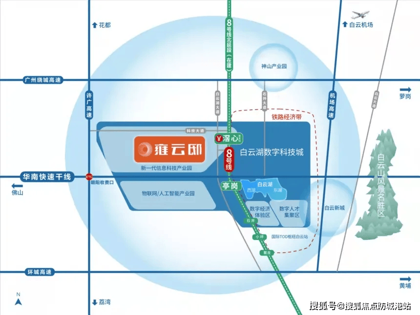 据悉,白云湖数字科技城港澳青年创新创业基地已进入实质性建设阶段,该基地规划面积近131公顷,主打电竞产业和影视动漫,将打造电竞综合馆、动漫酒店、众创基地等配套设施,预计2028年全面投入使用。基地建成后,将进一步完善区域数字创意产业生态,吸引更多港澳青年前来创新创业,为板块注入新的发展活力。同时,基地周边规划有地铁22号线号线夏茅站,未来交通出行将更加便捷,进一步提升区域的宜居性和产业承载力。