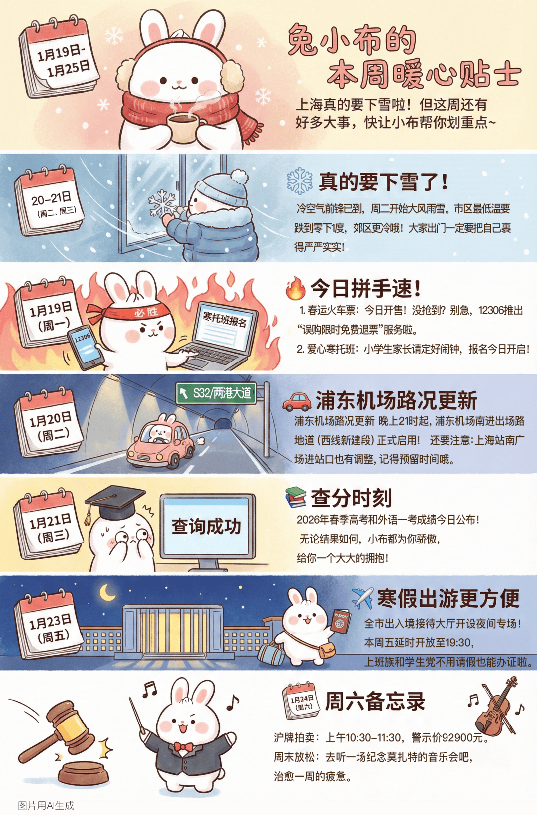 上海线首场全国性寒潮今早开始影响本市!2026年上海市小学生爱心寒托班报名通道今日开启,2026年铁路春运火车票今日开售……本周还有哪些大事?速看本周提示↓