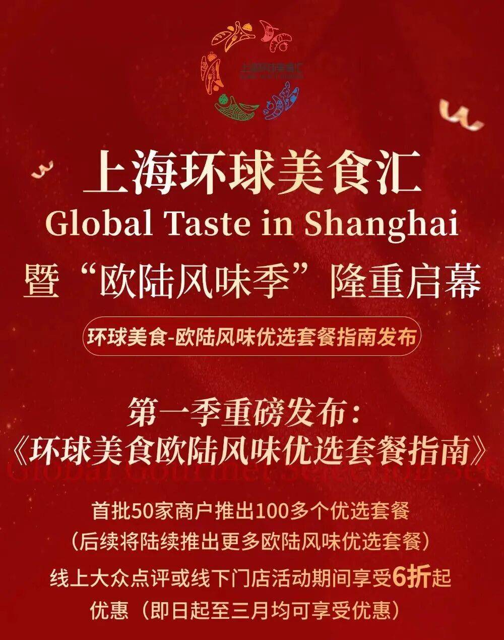 第一季由上海市商业联合会环球美食专委会联合上海交通广播-行味发布:《环球美食欧陆风味优选套餐指南》,首批50家商户推出100多个优选套餐(后续全市各区将陆续推出更多欧陆风味优选套餐)。