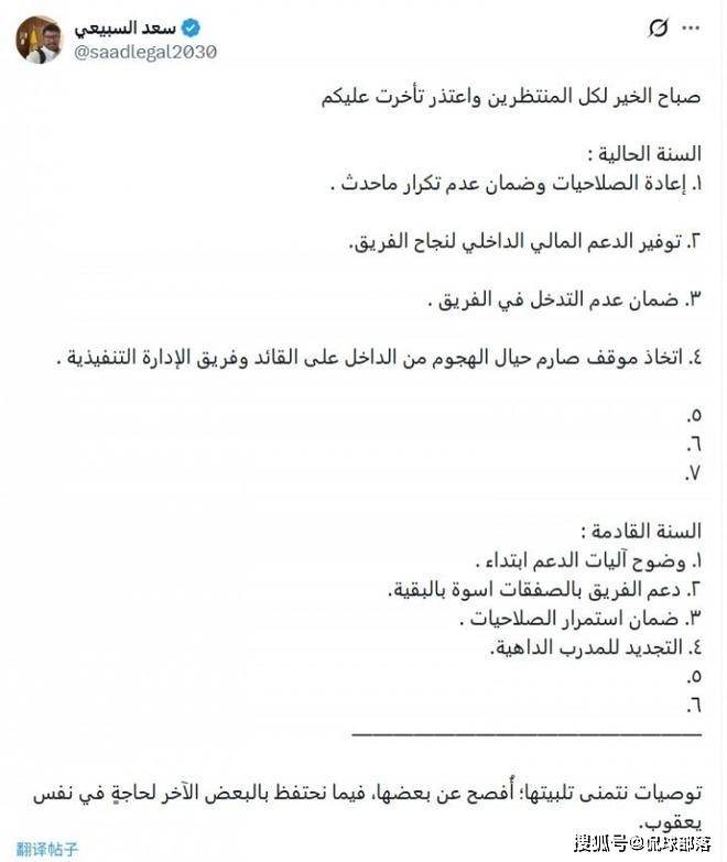 1. 恢复两位葡萄牙同胞塞梅多和西芒在利雅得胜利俱乐部的管理权,并确保过去的事情不再重演。