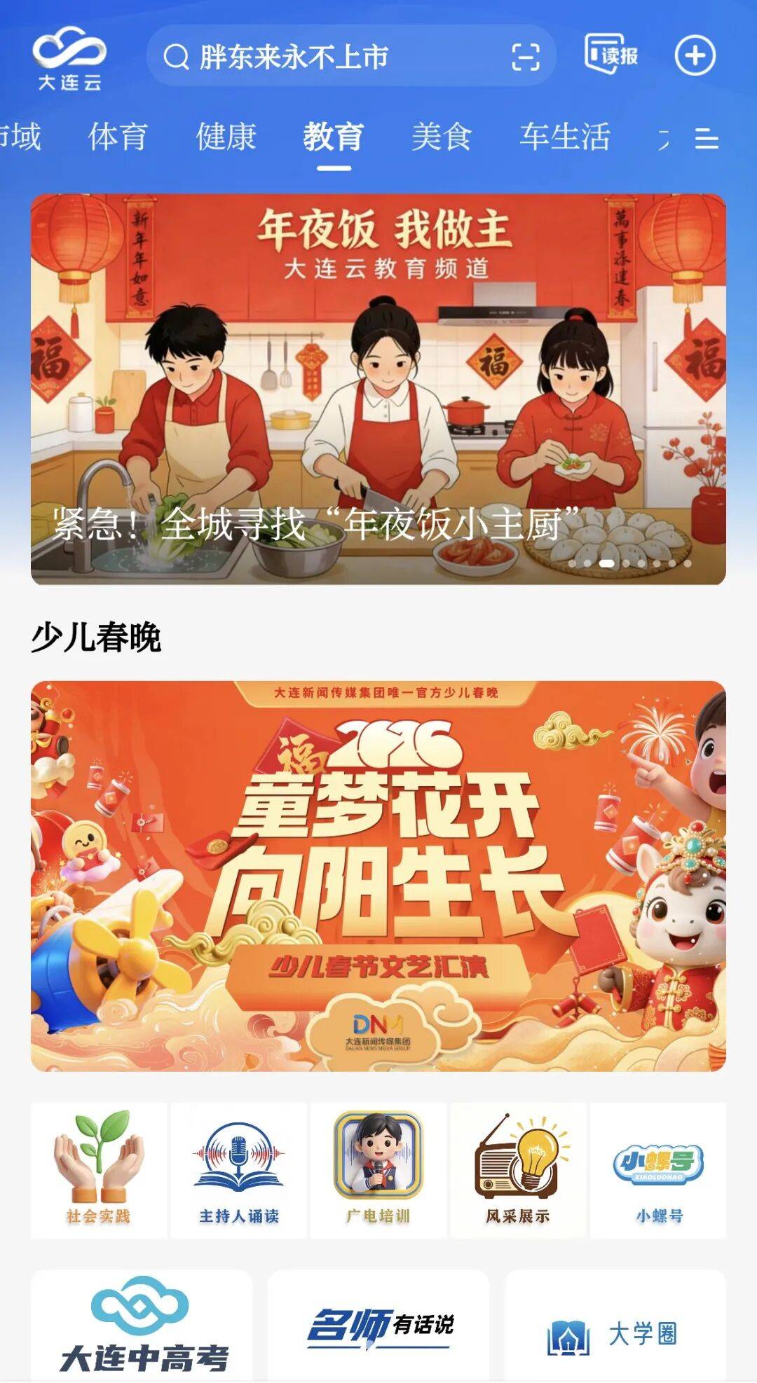 腊月二十八,大连云美食频道上线。不用下馆子,不用点外卖,打开视频,大厨就是你家的云导师。