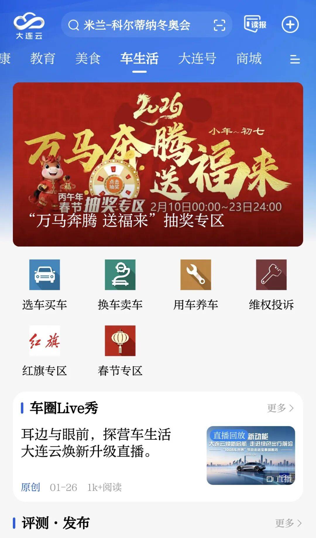 打开大连云,进入车生活频道,一直到正月初七,每天自动送一次机会,积分多的,能拿积分换三次机会,一天最多抽四次。过年了,给咱的老伙计讨个好彩头!