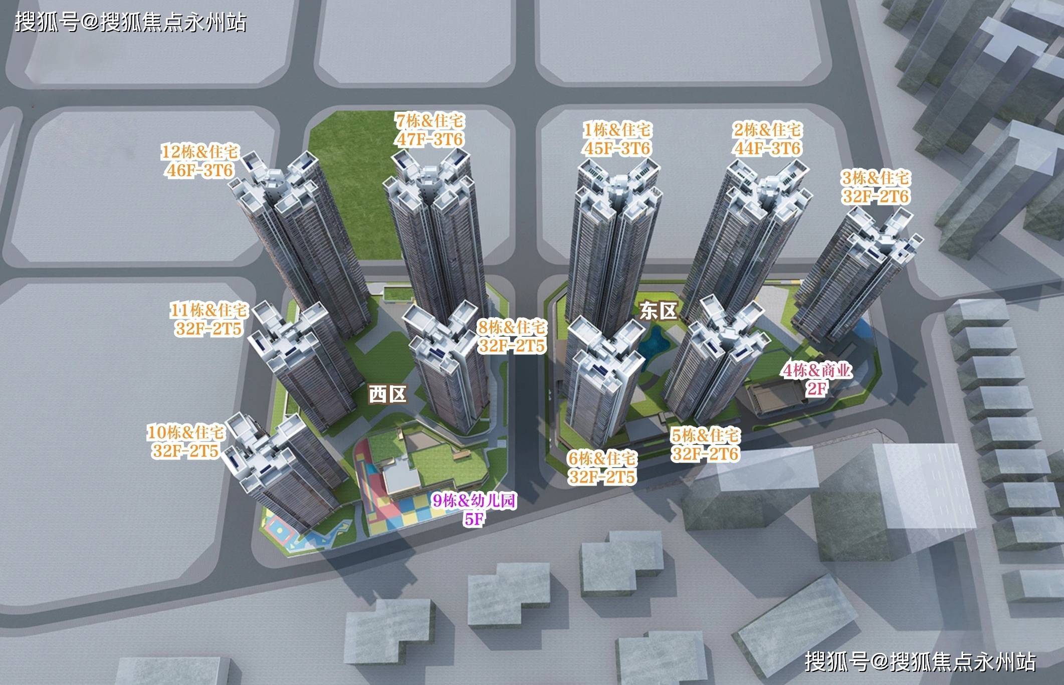 项目由中建集团打造,由总占地面积约4.33万㎡,总建筑面积约31万㎡,计容建筑面积约22.6万㎡,容积率5,绿化率40.01%,分2个地块开发,共由10栋总高32-47F的住宅组成,其中1栋住宅45F,2栋住宅44F,7栋住宅47F,3栋/5栋/6栋/8栋/10栋32F,11栋住宅46F,4栋规划商业,另规划有1所12班制的幼儿园。