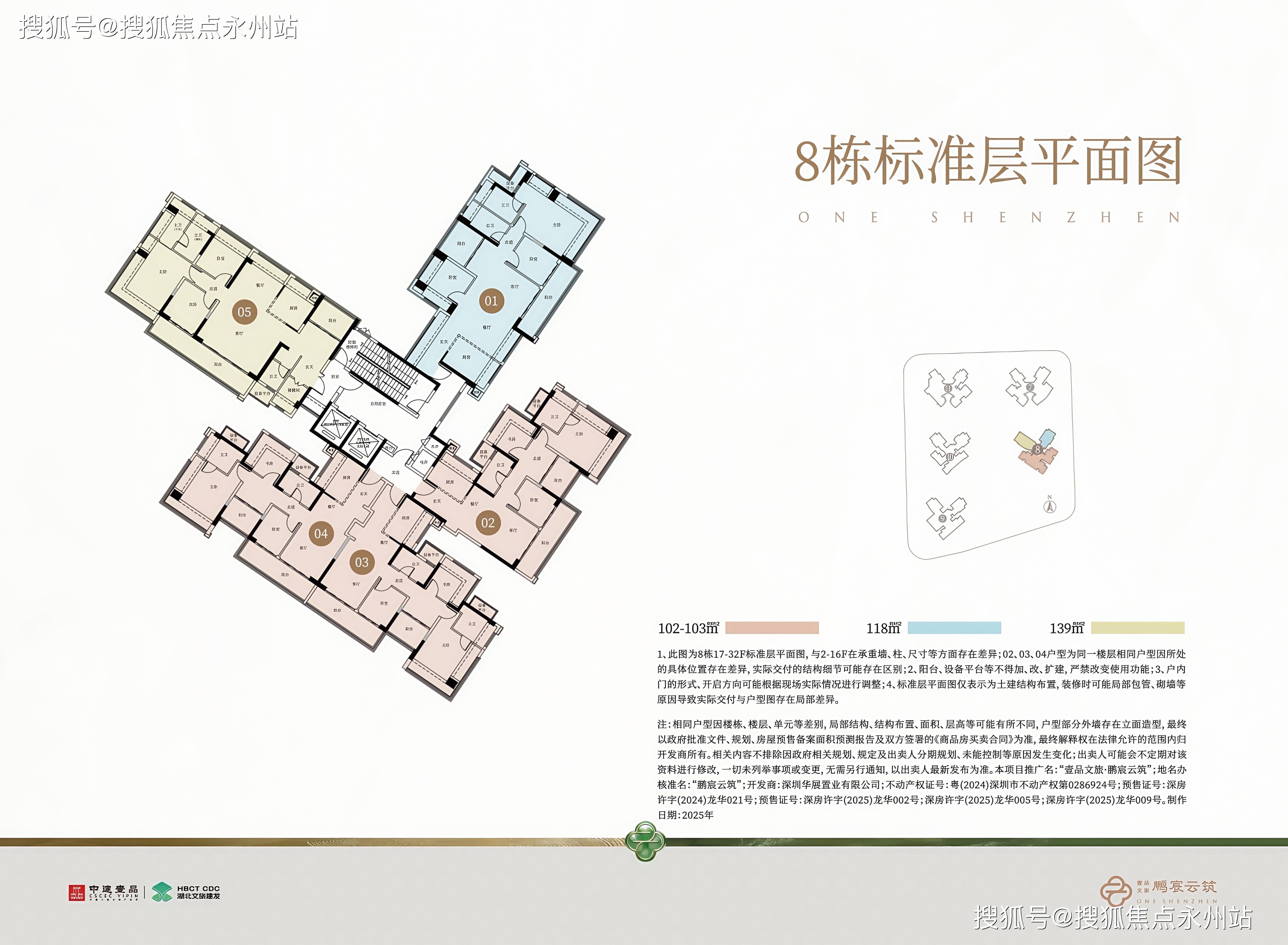 本次将推的是西地块8栋住宅,总高32层,2梯5户设计,总共154套,面积有102-118平的4房2卫,139平的4+1房2卫户型,均为纯四房设计,采用深圳建筑新规标准,综合实用率超100%